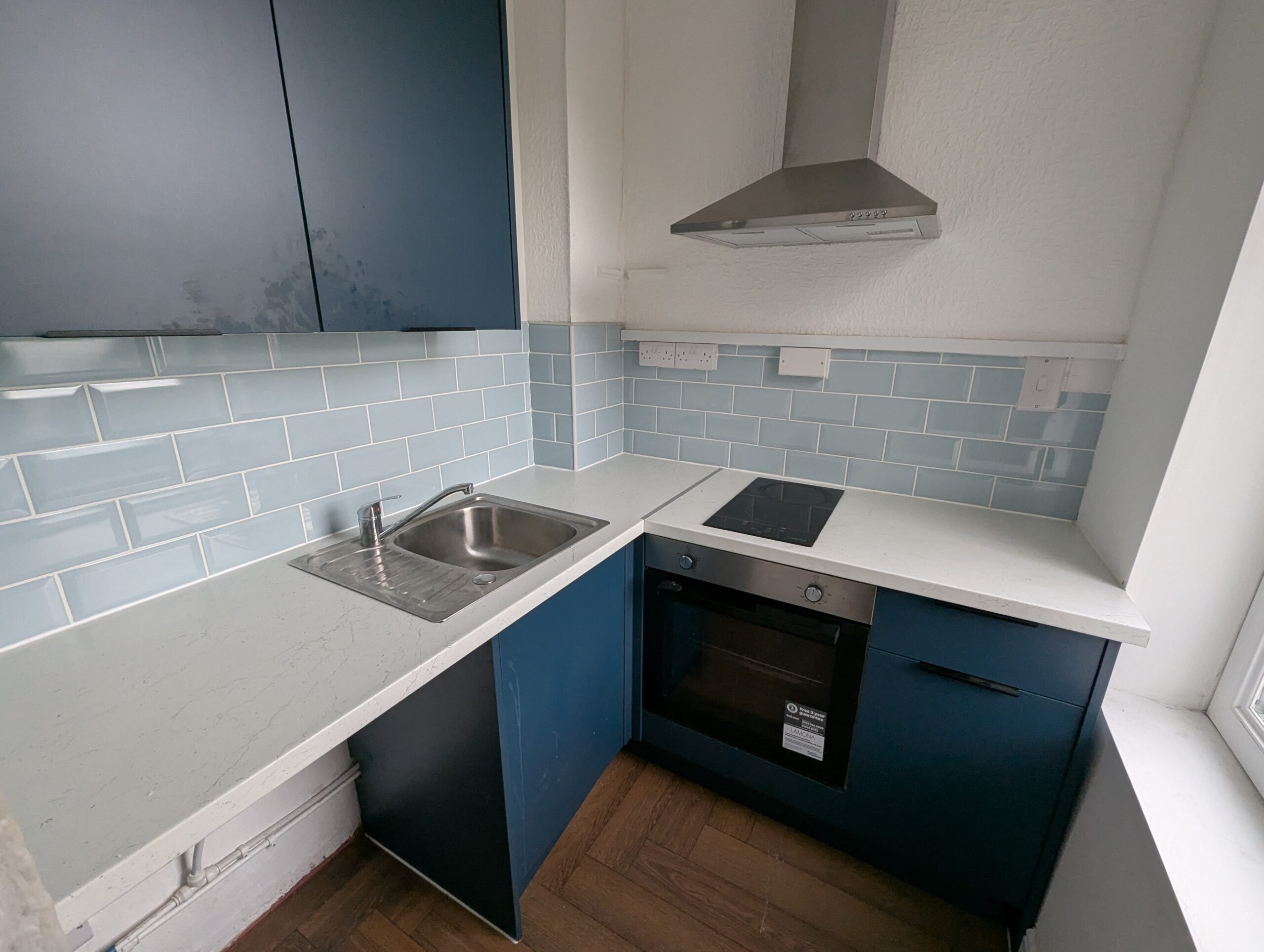 The property has been recently refurbished, featuring a communal hallway, it includes one bedroom, living room, a newly fitted modern bathroom with a shower over the bath, and a newly fitted kitchen equipped with an integrated oven and hob.