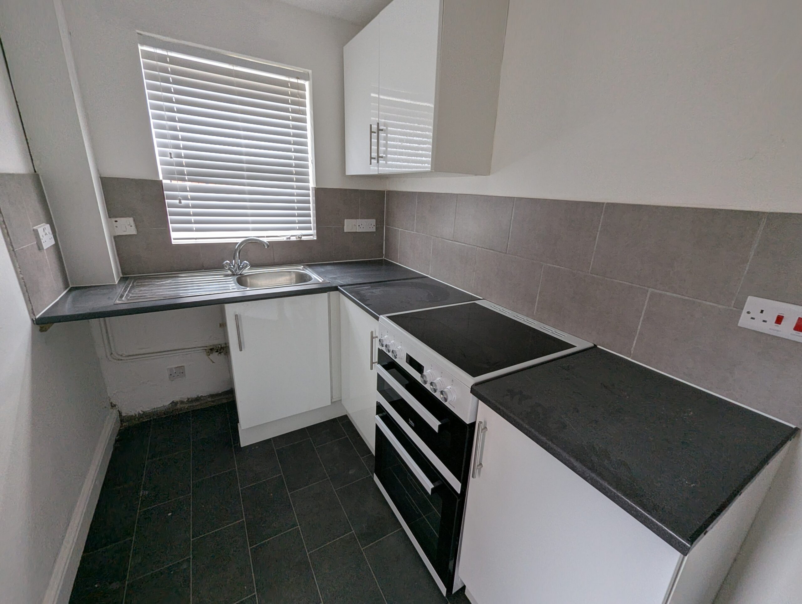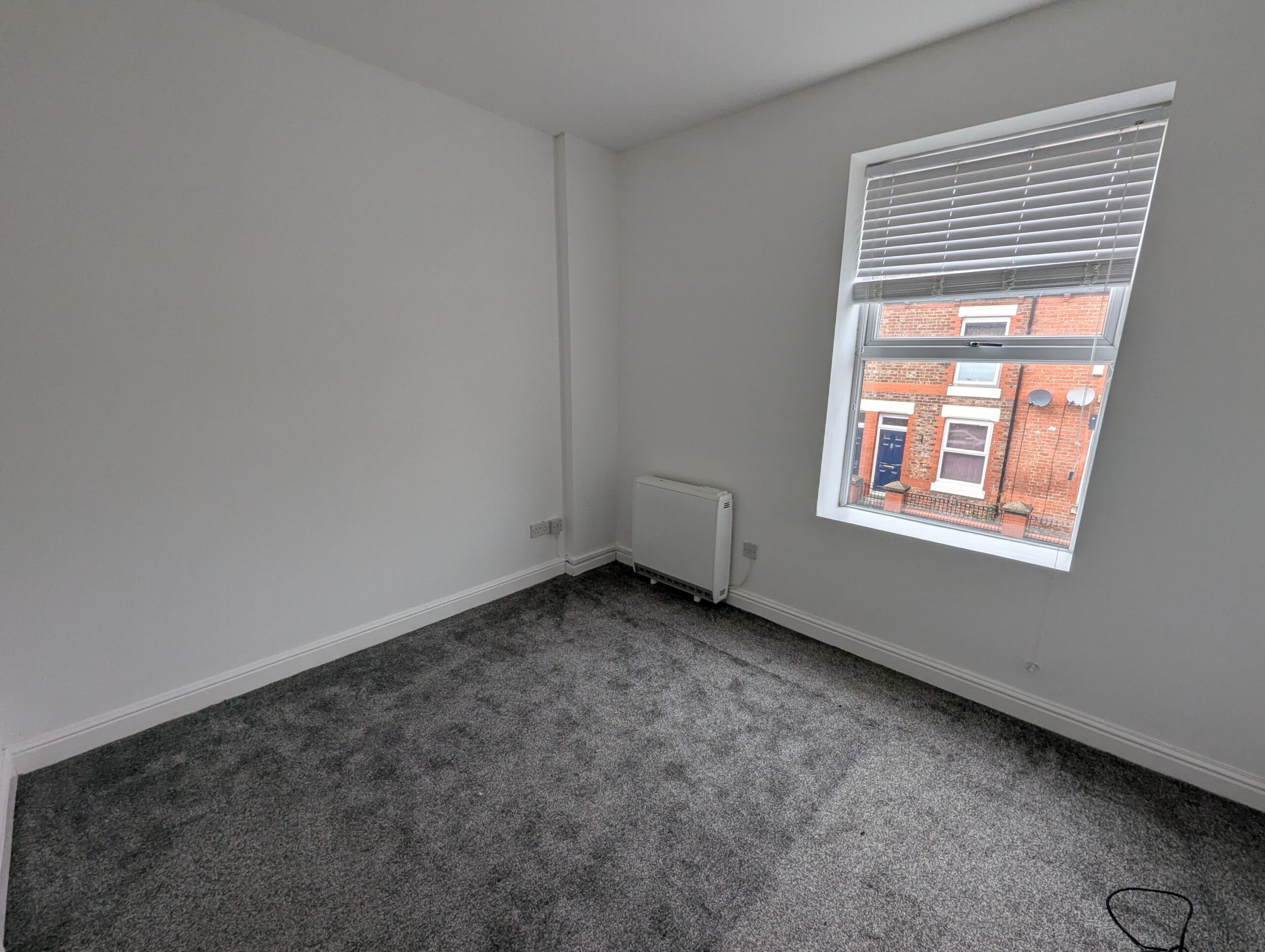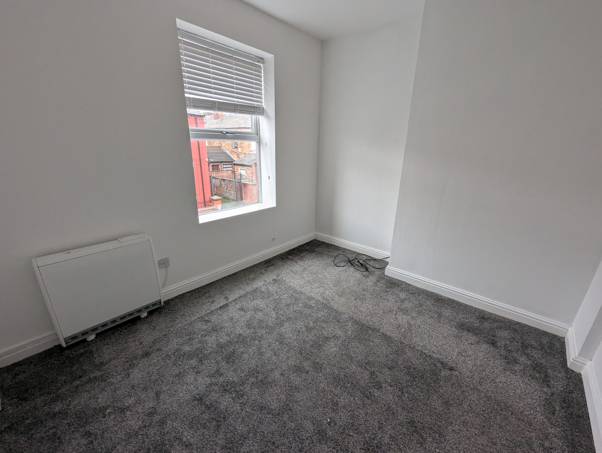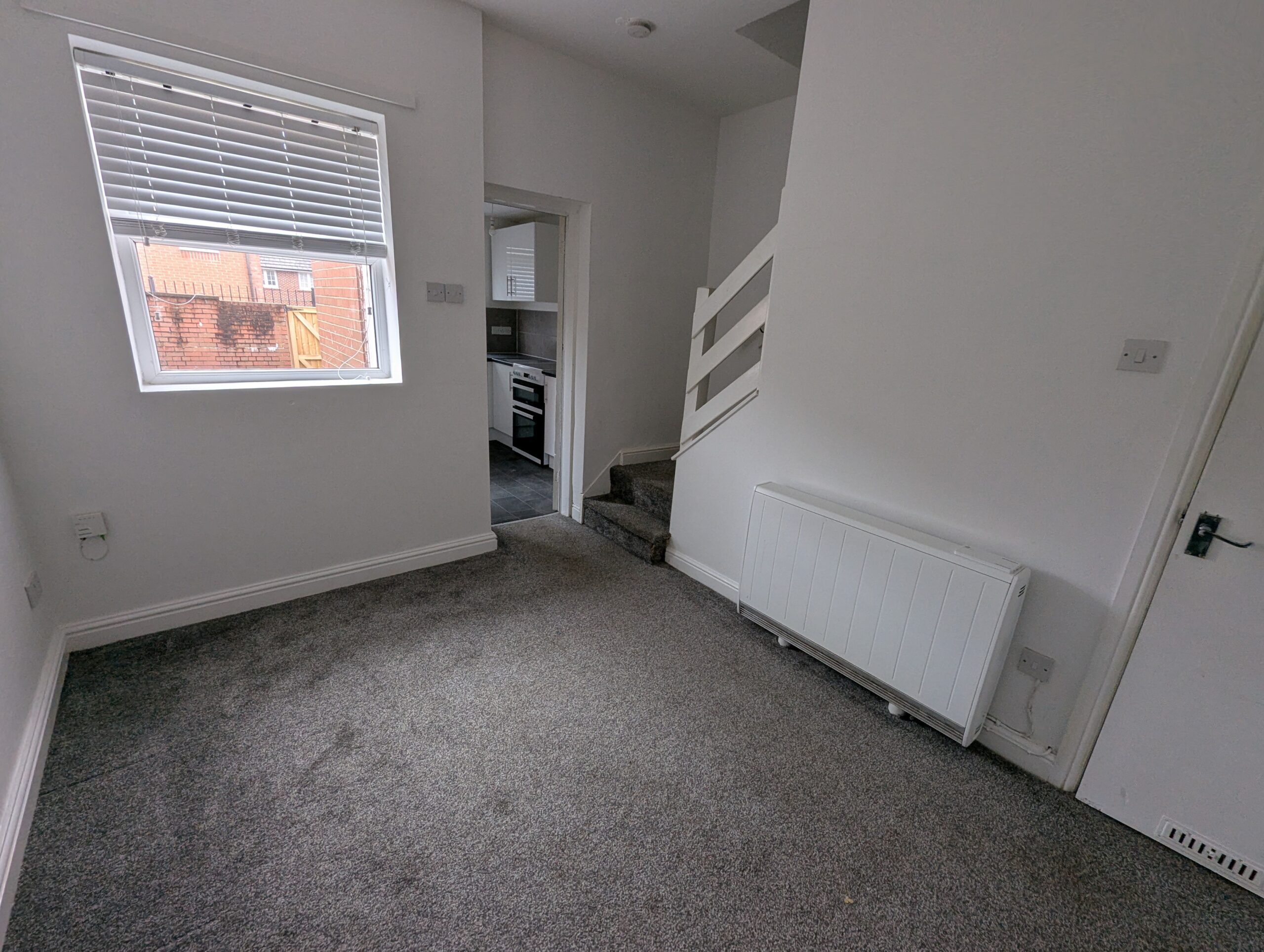 The property features two good sized bedrooms, a bathroom with shower over bath, two spacious reception rooms, and a fitted kitchen with oven and hob. Additional benefits include double glazing, electric storage heating, and a private rear yard.