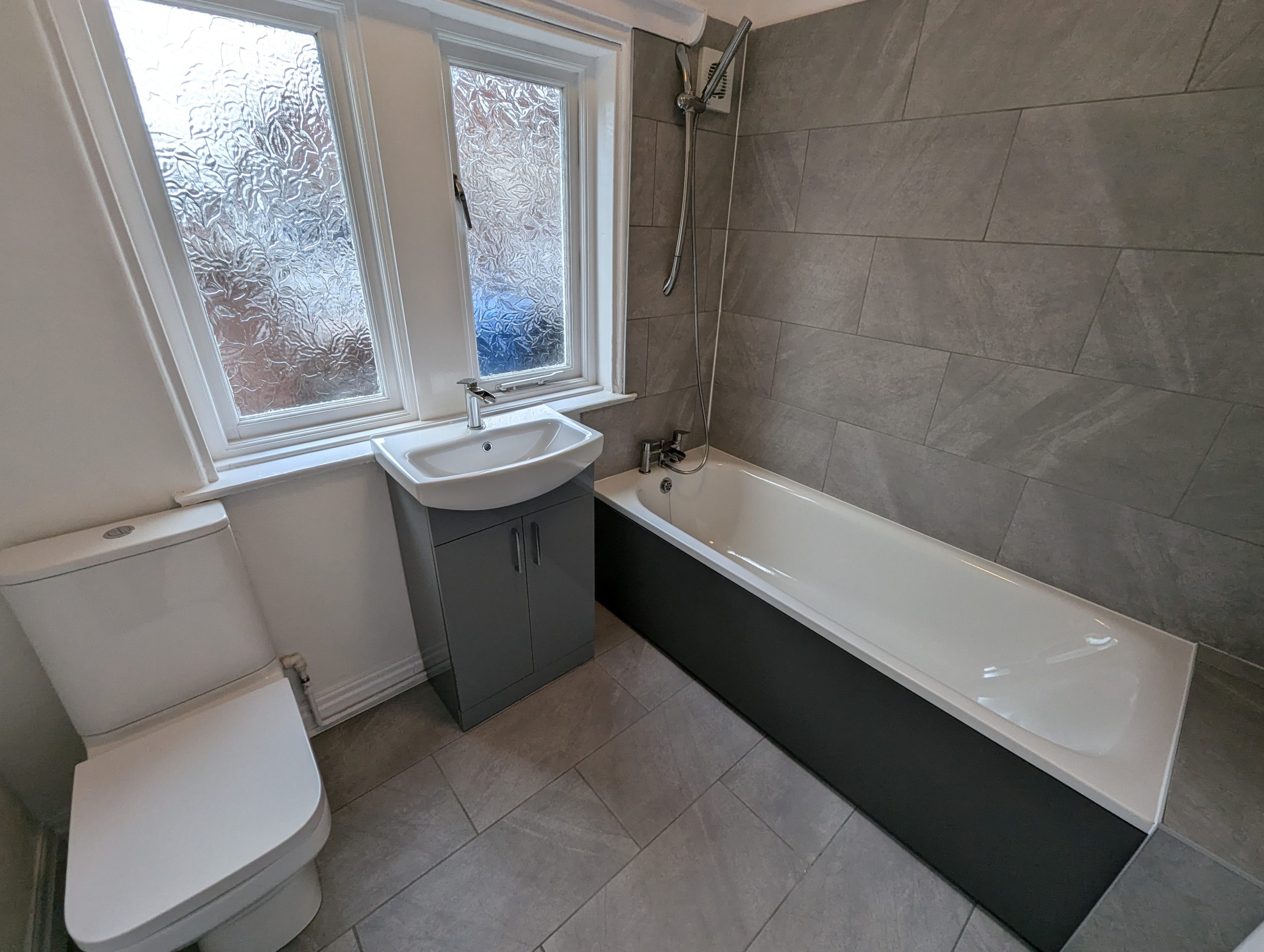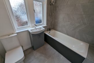 The property consists of a lounge, kitchen with oven and hob, two bedrooms and a bathroom with a shower over the bath.